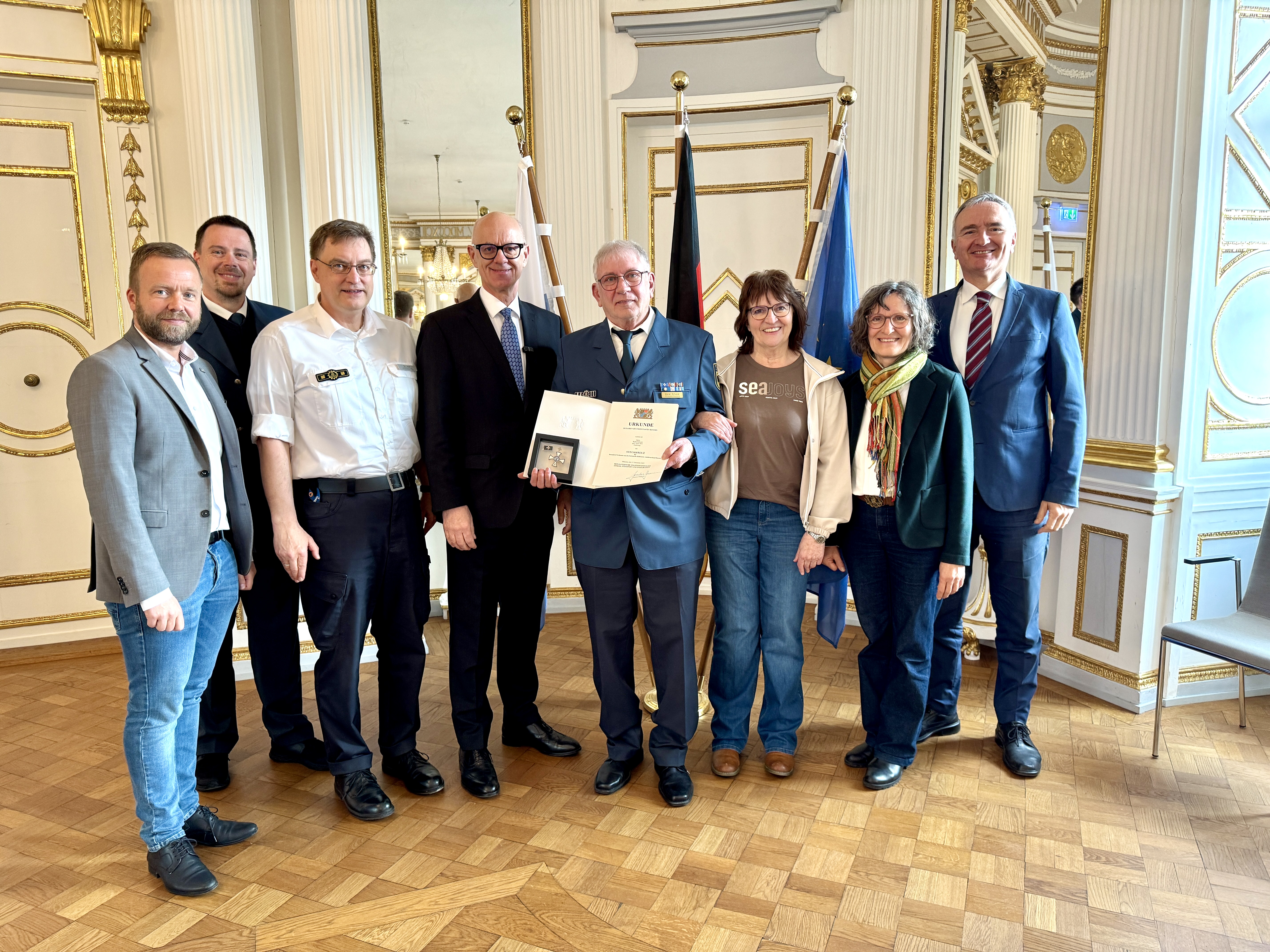 Walter Schuster ausgezeichnet: Steckkreuz für besondere Verdienste um das Technische Hilfswerk